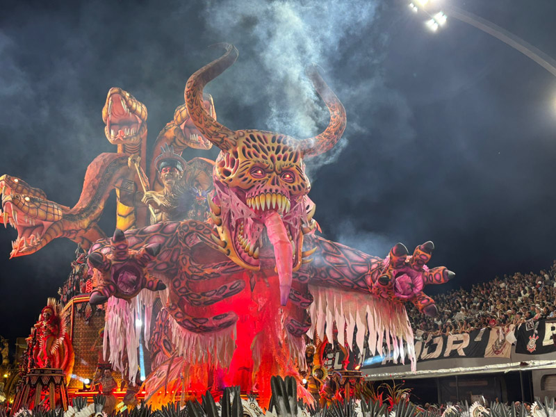 Pajés e tuxauas do Boi Caprichoso levam ancestralidade amazônica ao Sambódromo do Anhembi