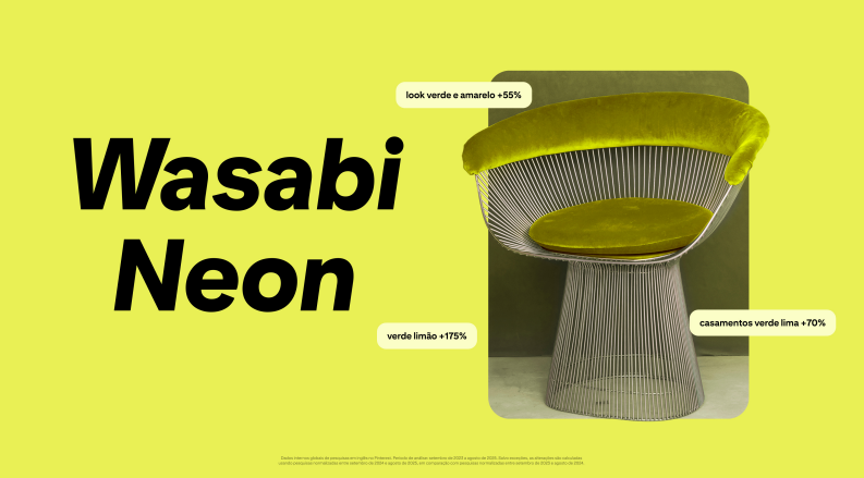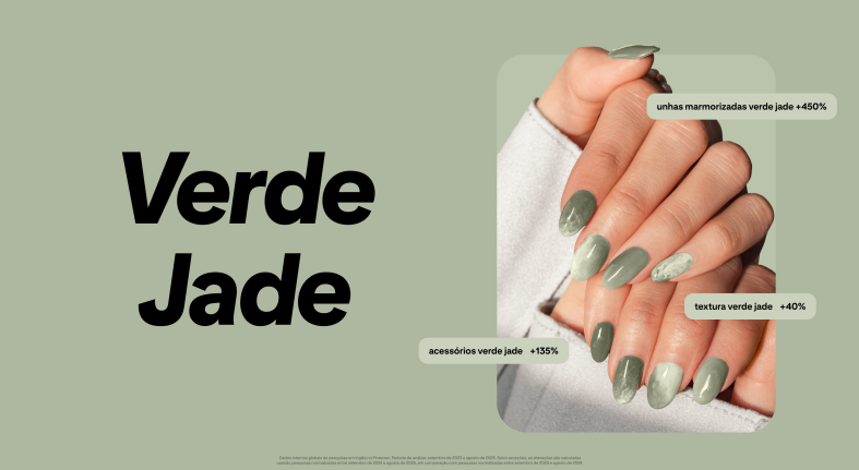 A Paleta do Pinterest de 2026, seleção anual da plataforma de tons em alta, foi divulgada com uma paleta de cinco matizes inspirados no que as pessoas estão buscando, salvando e explorando no Pinterest: Azul Glacial, Verde Jade, Ameixa Negra, Wasabi Neon e Coral Caqui — tons intensos, vibrantes e nada discretos que moldam a criatividade, o estilo e as tendências culturais em 2026.