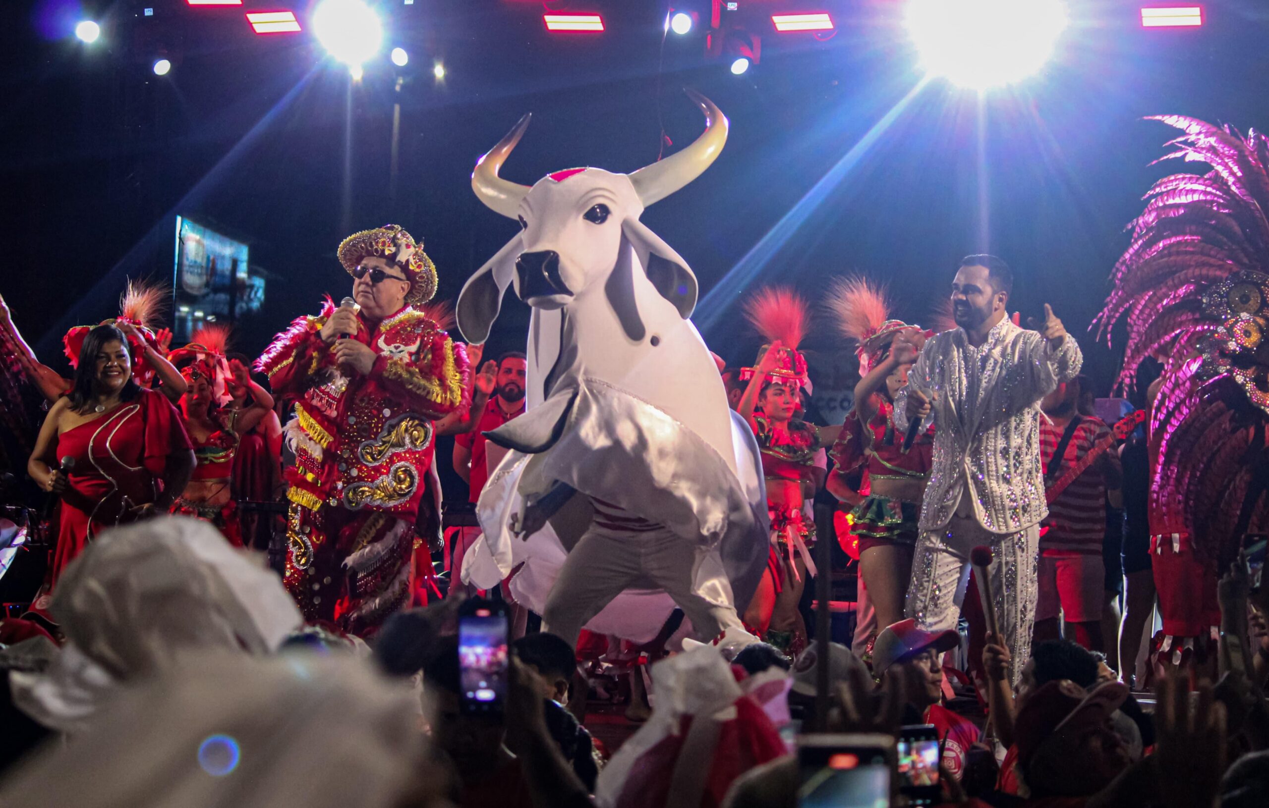 O Boi Garantido participou, na noite desta terça-feira, 15, do tradicional Arraial de Nossa Senhora do Carmo, padroeira de Parintins. Com sua forte ligação entre fé e cultura popular, o boi da Baixa da Xanda levou ao largo da catedral uma apresentação marcada por emoção, respeito e agradecimento.