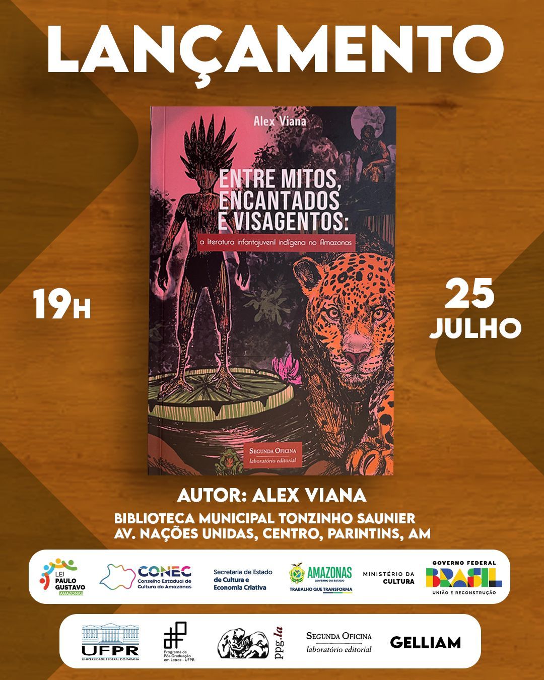 Nesta sexta-feira, 25, o município de Parintins (a 369 quilômetros de Manaus) recebe o lançamento do livro “Entre Mitos, Encantados e Visagentos: A literatura infantojuvenil indígena no Amazonas”, de autoria do pesquisador amazonense Alex Viana, doutorando em Estudos Literários pela Universidade Federal do Paraná (UFPR). A obra explora as literaturas indígenas produzidas no Amazonas, com foco no público infantojuvenil. O evento será realizado às 19h, na Biblioteca Tonzinho Saunier, localizada na Avenida Nações Unidas, no Centro da cidade.