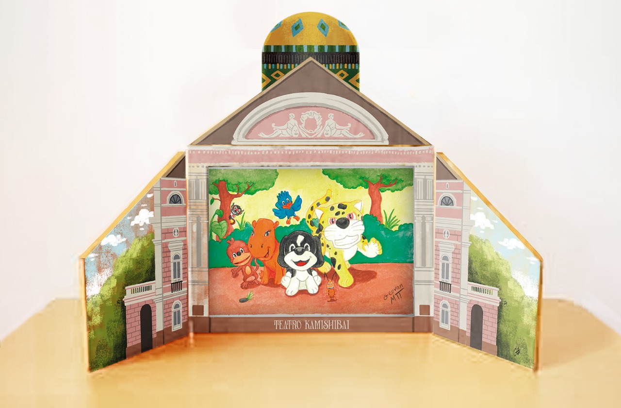 O kamishibai — que significa “teatro de papel” — é a arte de contar histórias em que o narrador utiliza um pequeno palco de madeira (butai) e uma sequência de ilustrações. Enquanto as imagens são mostradas ao público, o narrador interpreta a narrativa oralmente, dando vida aos personagens e conduzindo o ritmo da história.