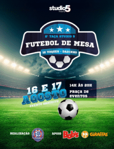 Botões deslizando rapidamente, estratégias milimetricamente calculadas e dedões preparados para a “2° Taça Futmesa” que acontece no Studio 5 Shopping, zona sul de Manaus. As partidas emocionantes são gratuitas e estão marcadas para os dias 16 e 17 de agosto, das 14h às 20h, na praça de eventos do shopping.