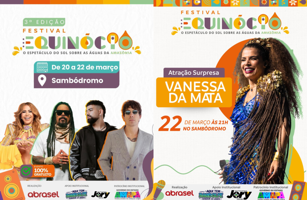 O Festival Equinócio 2026 acontece de 20 a 22 de março, próximo ao Marco Zero do Equador, em Macapá, com três dias de shows gratuitos e atividades culturais. O evento celebra o fenômeno astronômico em que o Sol incide diretamente sobre a Linha do Equador, fazendo com que dia e noite tenham a mesma duração.