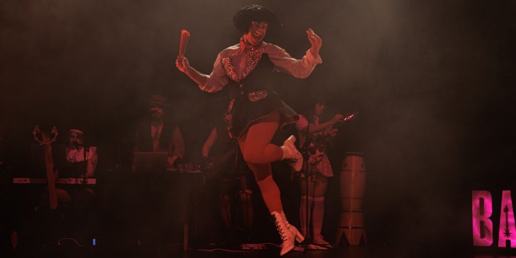 O uso de glitter, improviso e exagero cênico garante momentos que oscilam entre o riso e a reflexão, entregando uma experiência única para quem busca teatro fora do convencional.