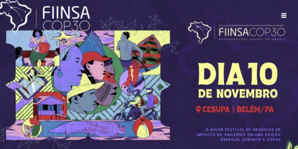 No dia 10 de novembro, ocorre o Festival de Investimento de Impacto e Negócios Sustentáveis da Amazônia (FIINSA), edição especial COP30. Um dos destaques da edição deste ano é o “Mercado Amazônia”, espaço que planeja reunir 50 marcas da floresta, com exposição de produtos e serviços.
