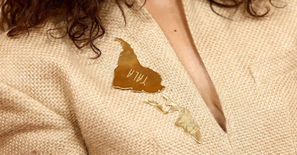 Fibras da Amazônia chegam ao tapete vermelho do Oscar em vestido usado por Alice Carvalho