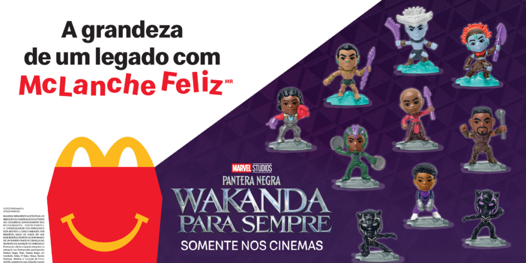 Neste mês, o McLanche Feliz comemora o lançamento da mais nova produção da Marvel Studios, “Pantera Negra: Wakanda para Sempre”. Ao todo, são dez miniaturas inspiradas nos personagens do filme, que já estão disponíveis nos restaurantes do McDonald’s. A novidade marca mais uma campanha com os heróis e heroínas da Marvel no McLanche Feliz. Aqueles […]
